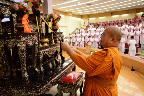 สานสัมพันธ์ พุทธบริหารการศึกษา ๒๔ พฤษภาคม ๒๕๖๒ พระสุวรรณเมธาภรณ์,ผศ.ดร. รองอธิการบดีฝ่ายวิชาการ มหาวิทยาลัยมหาจุฬาลงกรณราชวิทยาลัย เป็นประธานจุดเทียนไหว้พระบูชาพระรัตนตรัย กล่าวต้อนรับแสดงความยินดีและให้โอวาทผู้สำเร็จการศึกษาระดับมหาบัณฑิตและระดับดุษฎีบัณฑิต หลักสูตรระดับบัณฑิตศึกษา ภาควิชาบริหารการศึกษา คณะครุศาสตร์ ที่จบการศึกษาในปีการศึกษา ๒๕๖๑ ซึ่งจะเข้าพิธีประสาทปริญญาบัตรในวันอาทิตย์ ที่ ๒๖ พฤษภาคม ๒๕๖๒ …