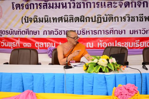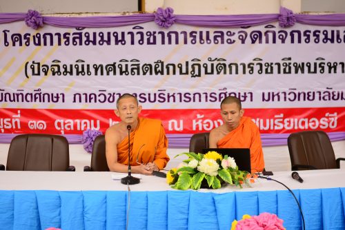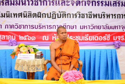 …วันพุธที่ ๓๑ ตุลาคม ๒๕๖๑ หลักสูตรบัณฑิตศึกษา ภาควิชาบริหารการศึกษา คณะครุศาสตร์ มหาวิทยาลัยจุฬาลงกรณราชวิทยาลัย จัดโครงการสัมมนาวิชาการและกิจกรรมเสริมหลักสูตร เพื่อพัฒนาศักยภาพผู้เรียนให้มีคุณภาพตามโครงสร้างหลักสูตรฯ ทั้งนิสิตหลักสูตรพุทธศาสตรมหาบัณฑิต (ป.โท) และหลักสูตรพุทธศาสตรดุษฎีบัณฑิต (ป.เอก) สาขาวิชาพุทธบริหารการศึกษา ใน โครงการปัจฉิมนิเทศฝึกปฏิบัติการวิชาชีพบริหารการศึกษา โดยมี พระราชสุตาภรณ์,ผศ.ดร. คณบดี คณะครุศาสตร์ มหาวิทยาลัยมหาจุฬาลงกรณราชวิทยาลัย เป็นประธานจุดธูปเทียนไหว้พระ และนำบูชาพระรัตนตรัย พร้อมทั้งกล่าวเปิดงาน โครงการปัจฉิมนิเทศฝึกปฏิบัติการวิชาชีพบริหารการศึกษา ซึ่งกิจกรรมครั้งนี้มีการนำเสนอและพร้อมสรุปข้อมูลที่ได้จากการปฏิบัติการวิชาชีพบริหารการศึกษาของนิสิตทั้งปริญญาโทและปริญญาเอกที่นิสิตได้ไปฝึกปฏิบัติการสถานศึกษา หรือปฏิบัติการสำนักงานเขตพื้นที่การศึกษาของแต่ล่ะแห่งนำเสนอ การบริหารจัดการของโรงเรียน รูปแบบ และจุดเด่นของการบริหารจัดการองค์กร และมอบวุฒิบัตรให้กับผู้บริหารสถานศึกษาที่ให้นิสิตได้เข้าร่วมฝึกปฏิบัติการวิชาชีพบริหารการศึกษา