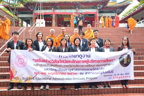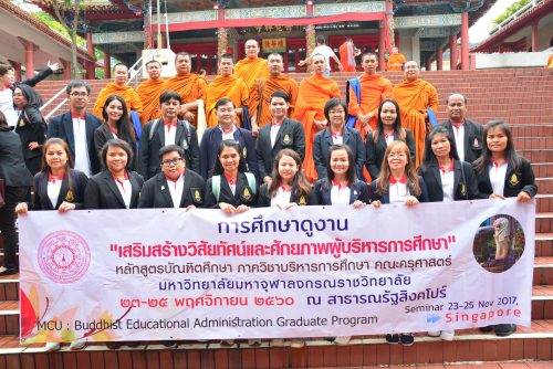 …หลักสูตรบัณฑิตศึกษา ภาควิชาบริหารการศึกษา หลักสูตรพุทธศาสตรมหาบัณฑิต สาขาวิชาการบริหารการศึกษา คณะครุศาสตร์ มหาวิทยาลัยมหาจุฬาลงกรณราชวิทยาลัย จัดโครงการสัมมนาวิชาการและศึกษาดูงานต่างประเทศ “สร้างวิสัยทัศน์และศักยภาพผู้บริหารสถานศึกษา” ระหว่างวันที่ ๒๓-๒๕ พฤศจิกายน ๒๕๖๐ ณ สาธารณรัฐสิงคโปร์ (Republic Of Singapore)