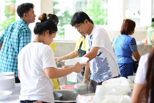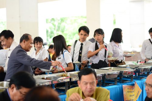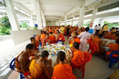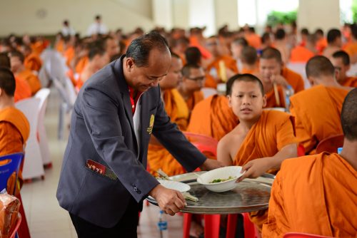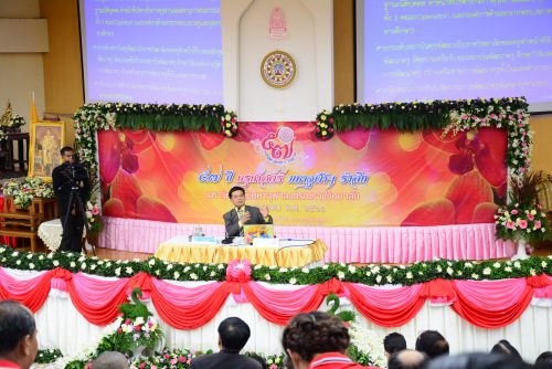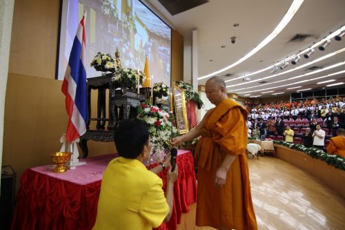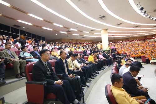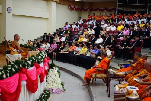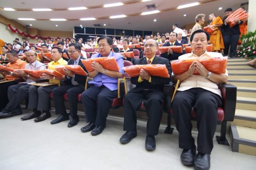 ภาคเช้าผู้บริหารคณาจรย์ เจ้าหน้าที่ พร้อมด้วยนิสิต คณะครูศาสตร์ ได้ร่วมถวายภัตราหารเพลแด่พระภิกษุ สามเณร จำนวนมากกว่า ๕๐๐ รูป และทางฝ่ายคฤหัสถ์รับประทานอาหารร่วมกันบริเวณโซนซี คณะครุศาสตร์ มจร ซึ่งเป็นการทำต่อกันมาจนบัดนี้ ปีที่ ๕๗ และในภาคบ่ายมีการบรรยายพิเศษเรื่อง “กฎเกณฑ์และทิศทางของวิชาชีพครู” โดย ดร.สมศักดิ์ ดลประสิทธิ์ เลขาธิการคุรุสภา..